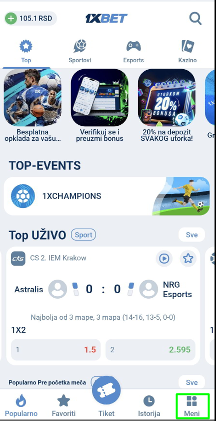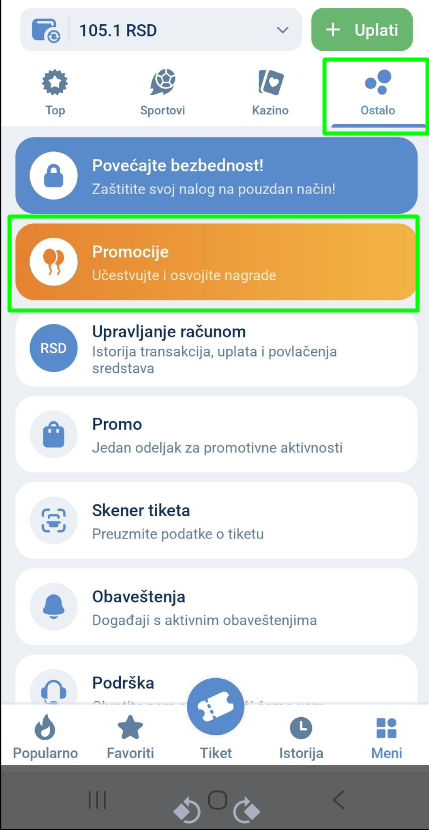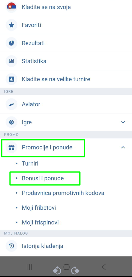 1️⃣ Putanja: Meni – Promocije i ponude – Bonusi i Ponude