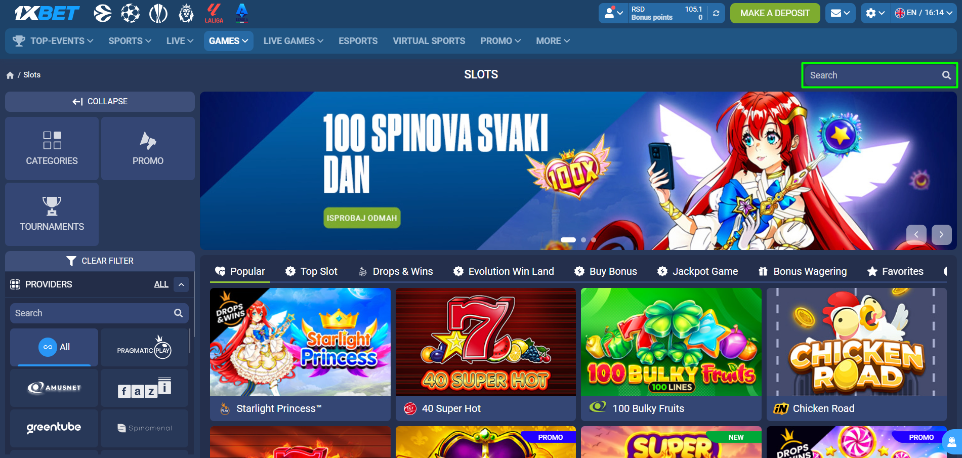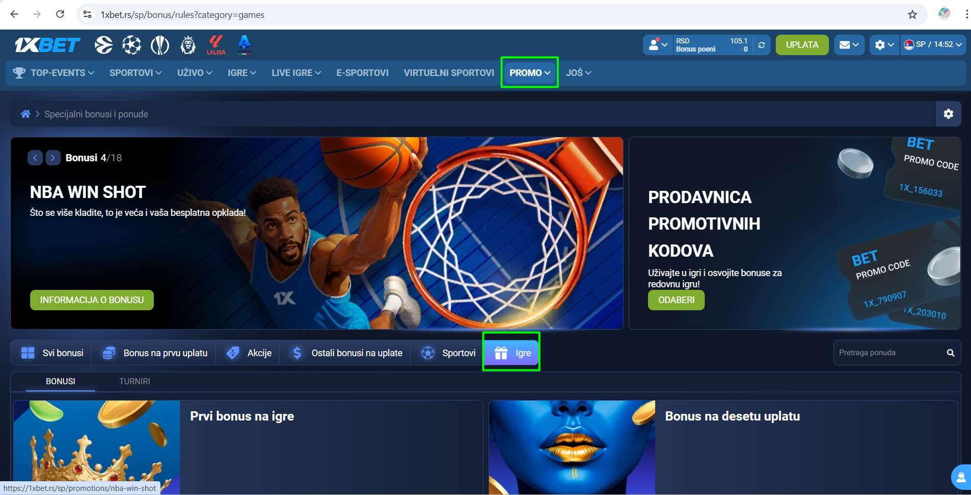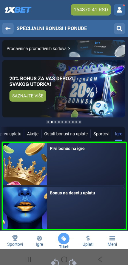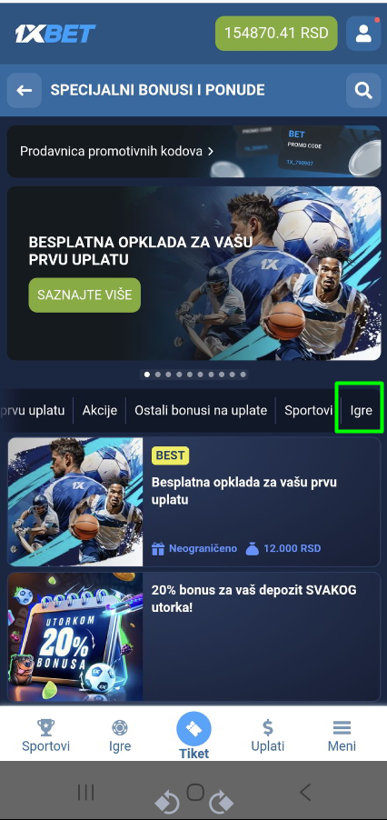 2️⃣ Kada na stranici izabereš “Igre”, prikazaće se sve trenutno dostupne promocije