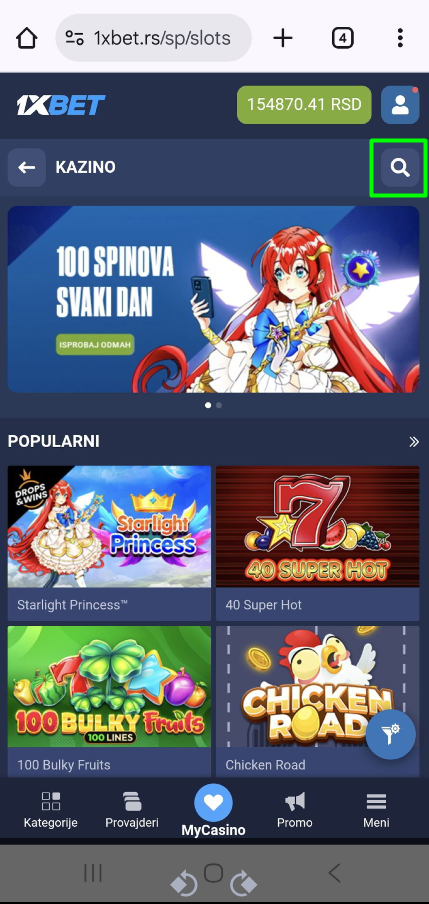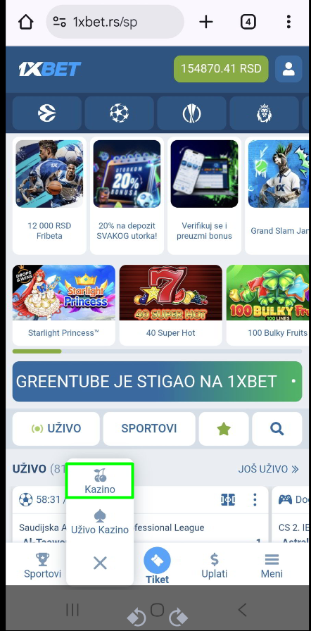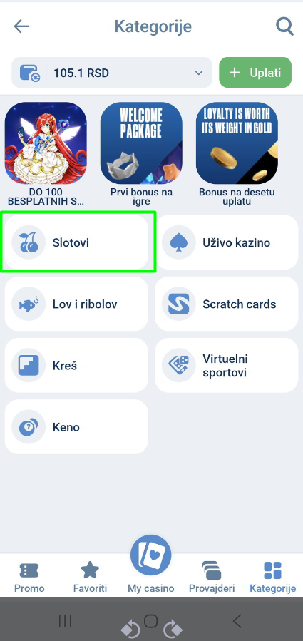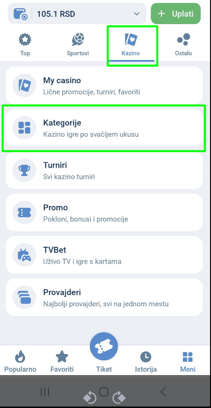 1️⃣ Putanja: Meni – Kazino- Kategorije