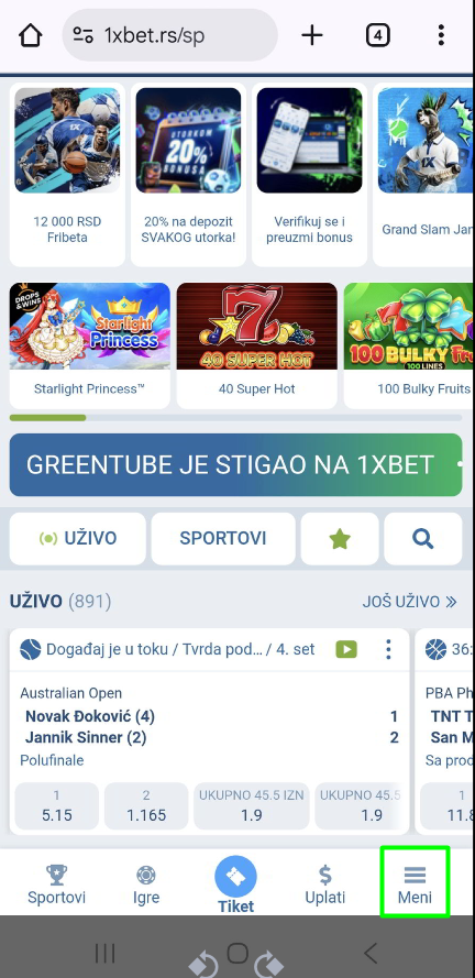 Na mobilnoj aplikaciji, turniri su dostupni na putanji Kazino – Turniri: