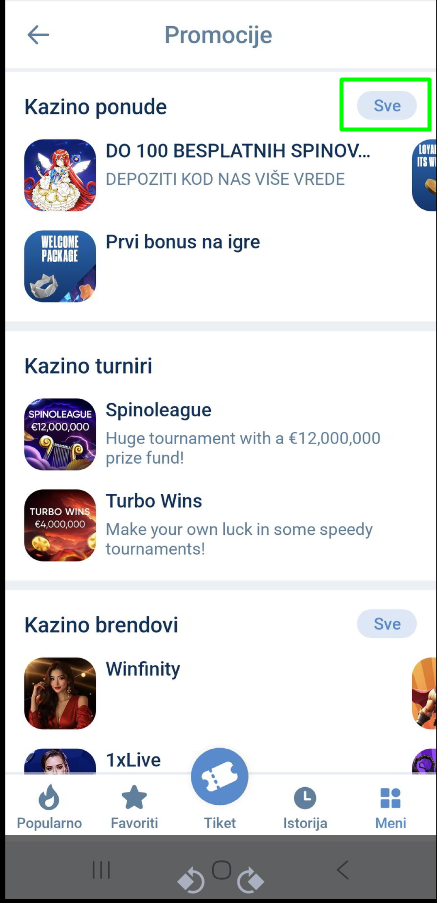 3️⃣ Kikom na dugme “Sve” biće ti prikazane sve dostupne promocije