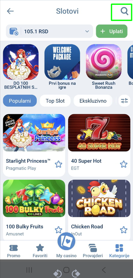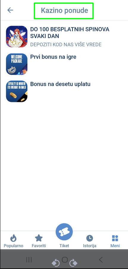 2️⃣ U okviru sekcije Promocije nalaze se kazino ponude