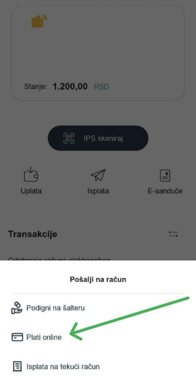 3. Pojaviće se nove opcije – izaberite „Plati online“.