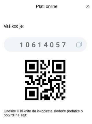 - Nakon izbora, na ekranu će se generisati jedinstveni kod.